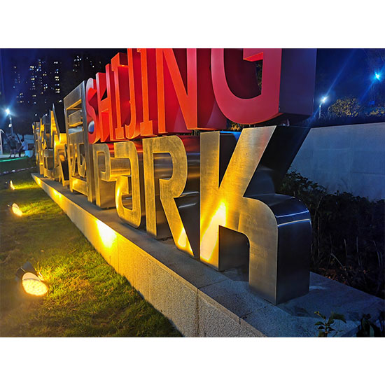 落地字,又稱景觀字,落地藝術字等,就是把字體製作成型,直接安裝在在麵上、草坪上,落地字的特點是,外觀厚實、效果震撼。主要安裝於:廣場、酒店、公園、綠道、商業中心···